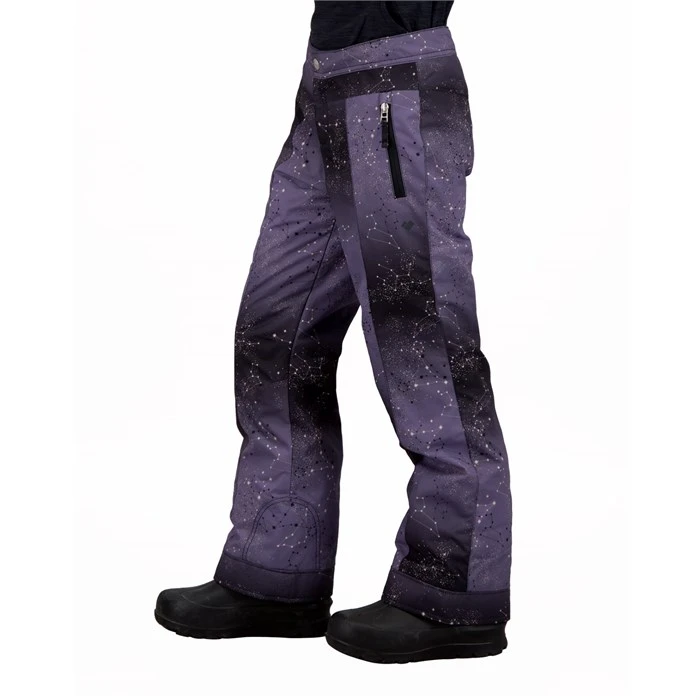 The pant waistline has an integrated elastic feature allowing for individual adjustment. The length of the pant is part of this system as well. By simply snipping the colored threads, you can lengthen the pant hems and inner powder cuffs up to two inches.