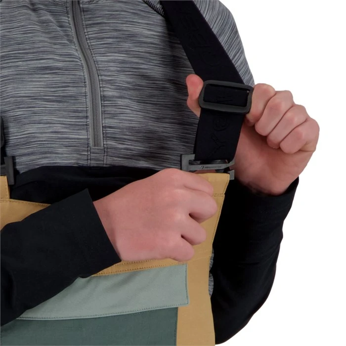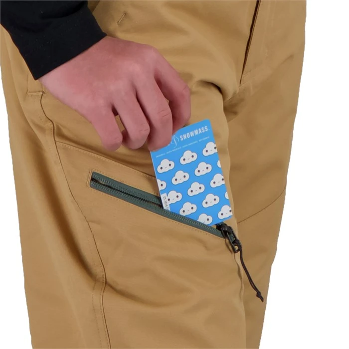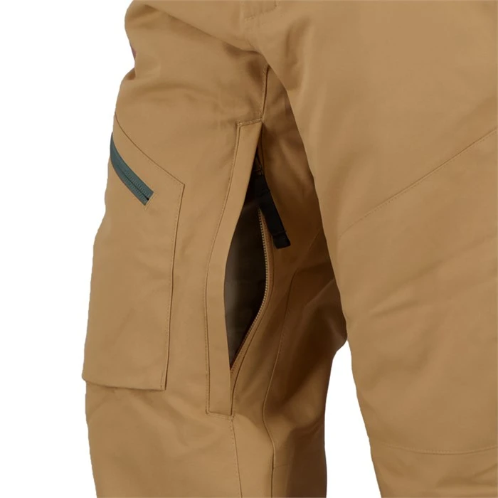 The pant waistline has an integrated elastic feature allowing for individual adjustment. The length of the pant is part of this system as well. By simply snipping the colored threads, you can lengthen the pant hems and inner powder cuffs up to two inches.